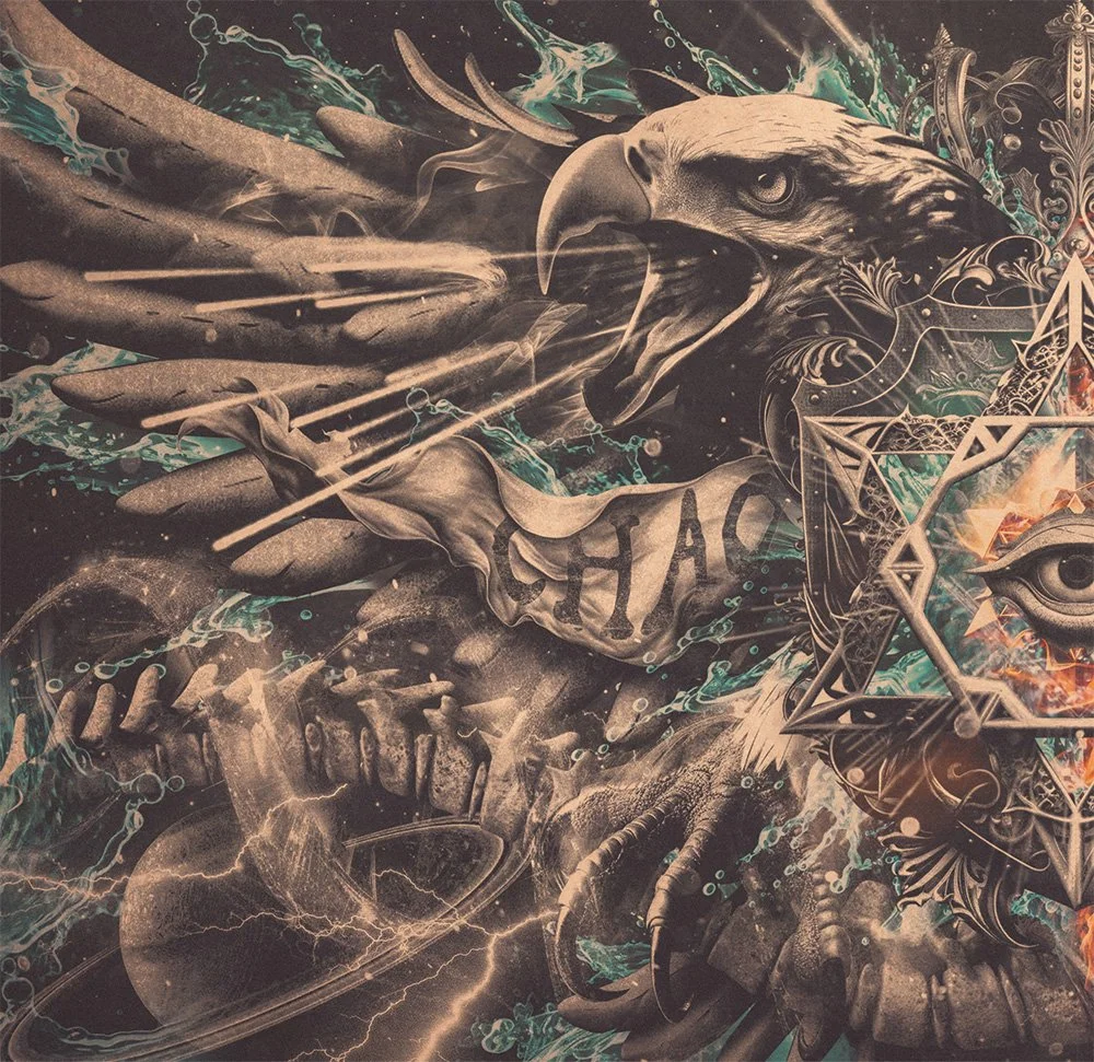 Visually, the album echoes these themes without explanation. Its iconography is centered, balanced, and symbolic. Opposing forces are present, but neither dominates. The journey lies between them. The details matter less than the feeling they evoke: symmetry, judgment, sovereignty, and collapse. The design does not illustrate the music, it inhabits the same architecture.