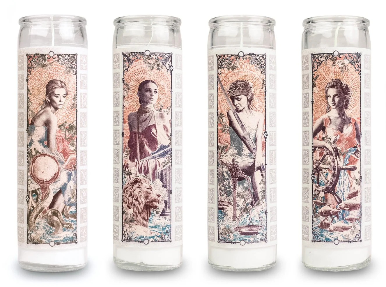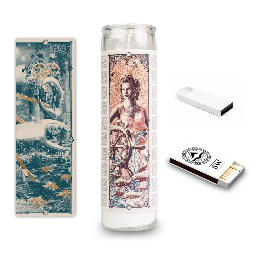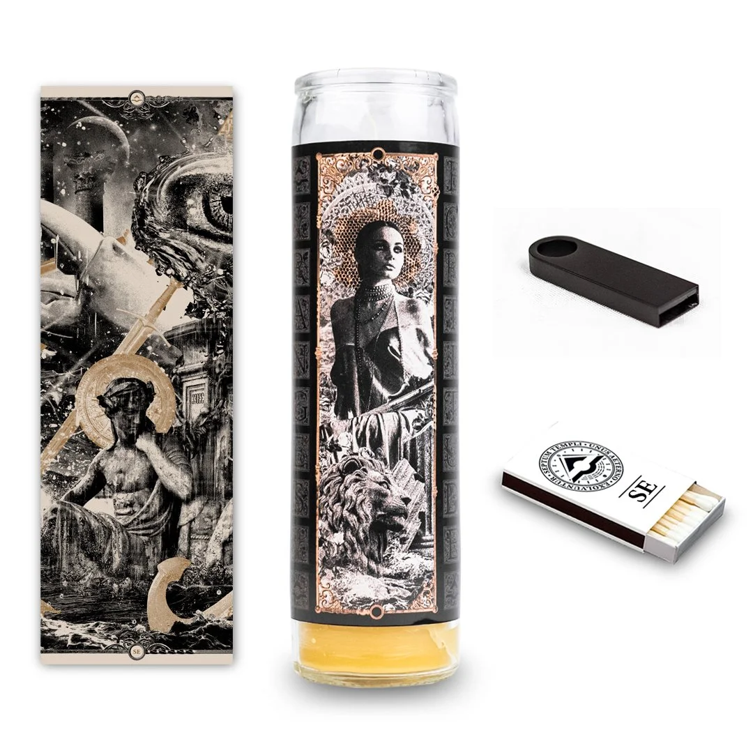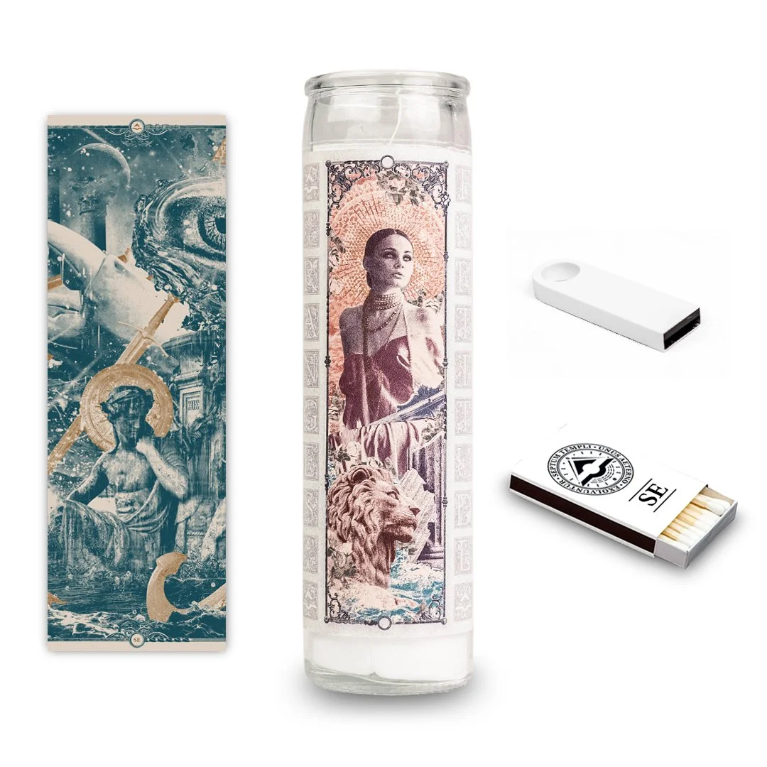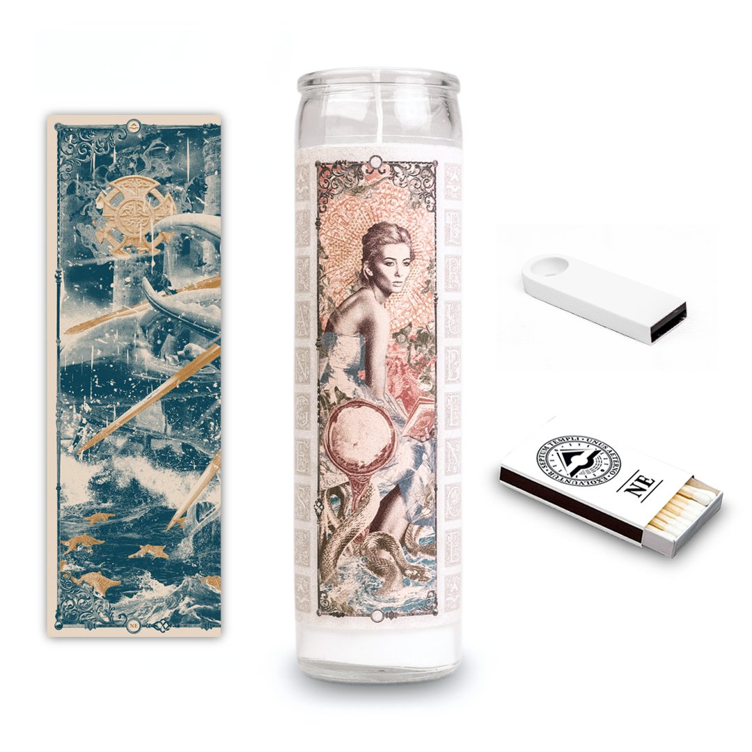 Each flash drive was accompanied by a prayer candle wrapped in the image of one of the four classical goddesses from the Cardinal Winds gatefold. A section of a large format poster was included with each release, one fourth of a greater whole that could only be completed by assembling all four. Each Intercardinal was also packaged with a box of matches bearing the direction of the release and the RANGES seal.